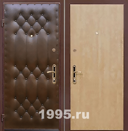 Для монтажа внутри помещенияЕсли вам необходимо установить дверь, которая наружной стороной будет находиться в помещении, то предлагаем в качестве отделки использовать кожзам с двух сторон. Таким образом, приятный внешний вид будет не только внутри квартиры, но и в подъезде.
